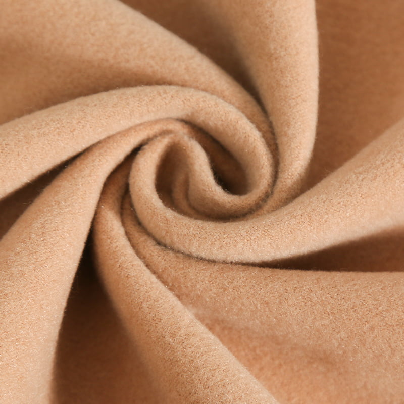 Pored teških karakteristika, još jedan vrhunac ove tkanine je njegov dvostrani četkani dizajn. U procesu proizvodnje tkanine, tehnologija četkanja koristi se za izvlačenje finog pahulja iz površinskih vlakana, tvoreći meku i gustu površinu od antilop. Štoviše, ova je tkanina dvostrana četkana, to jest, i prednja i stražnja strana su četkana, što znači da bez obzira iz kojeg kuta gledate, kaput odiše šarmantnim sjajem i mekom dodirom. Ovaj dizajn ne samo da poboljšava zadržavanje tkanine topline, već i dodaje dodir mode i plemenitosti kaputu.